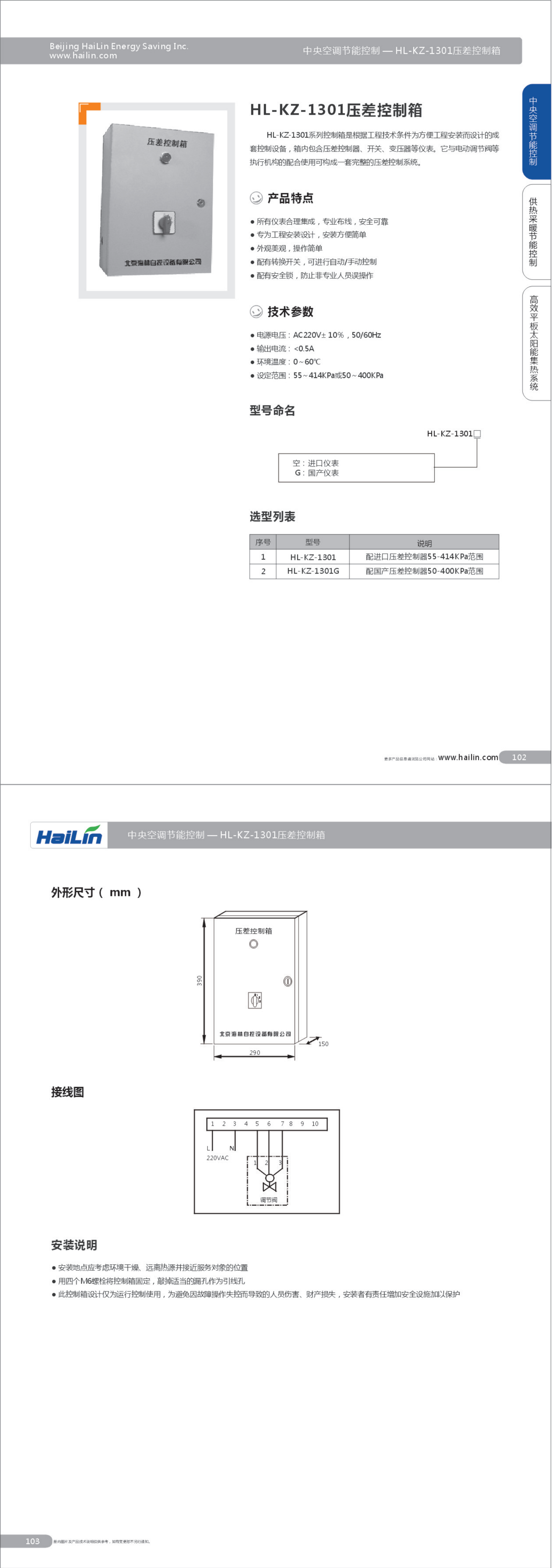 HL-KZ-1301系列控制箱是根据工程技术条件为方便工程安装而设计的成套控制设备,箱内包含压差控制器、开关、变压器等仪表。它与电动调节阀等执行机构的配合使用可构成一套完整的压差控制系统。