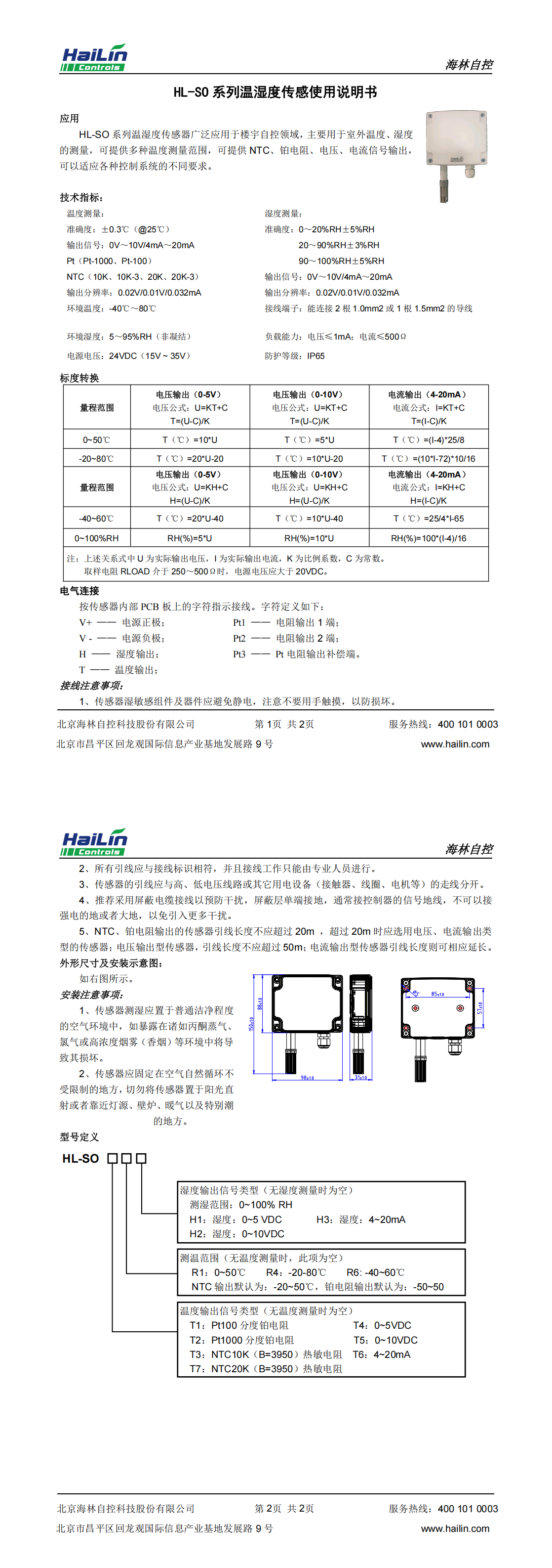首页 > 产品中心 > HL-SO-MD室外温湿度传感器