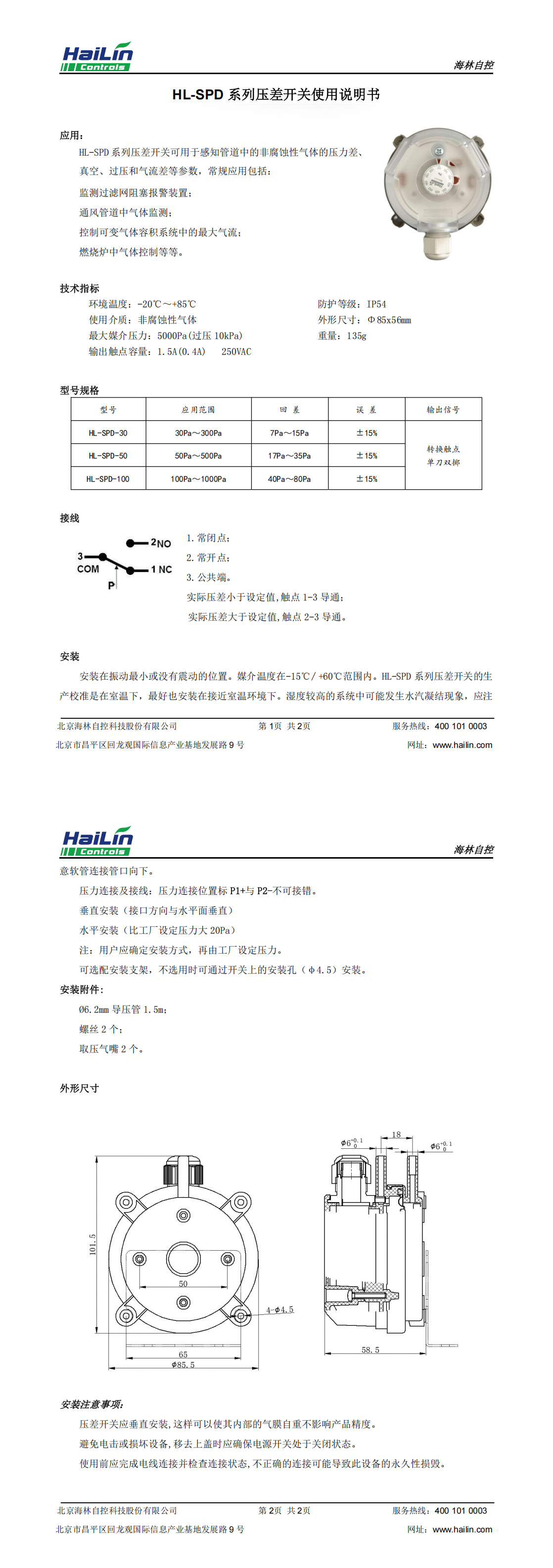 HL-SPD-50压差开关
